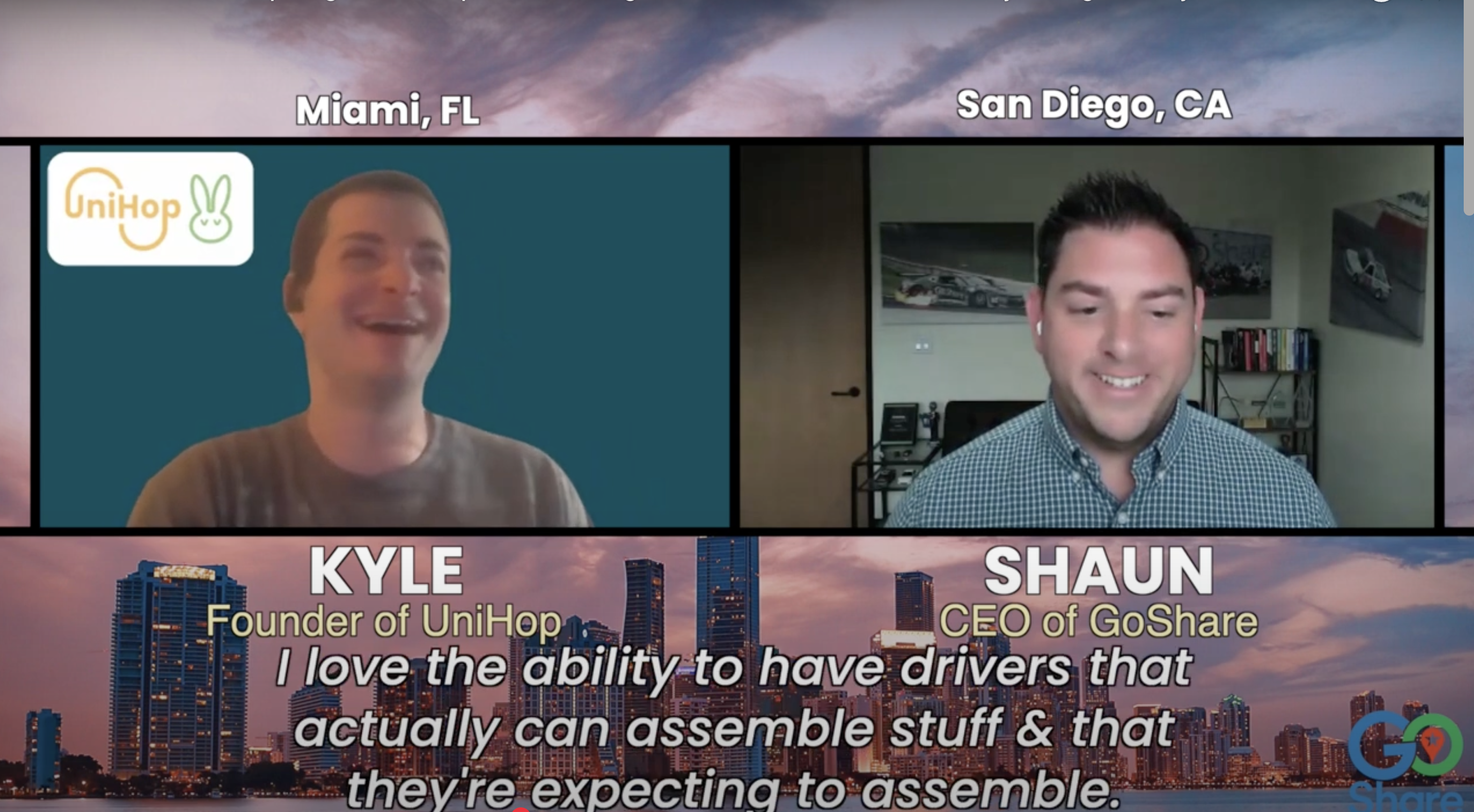 We are excited to share our latest Customer Spotlight Video, featuring UniHop. In this video CEO Shaun Savage takes a moment to speak with Kyle Levy, founder of UniHop, about why they love working with GoShare for last mile delivery.