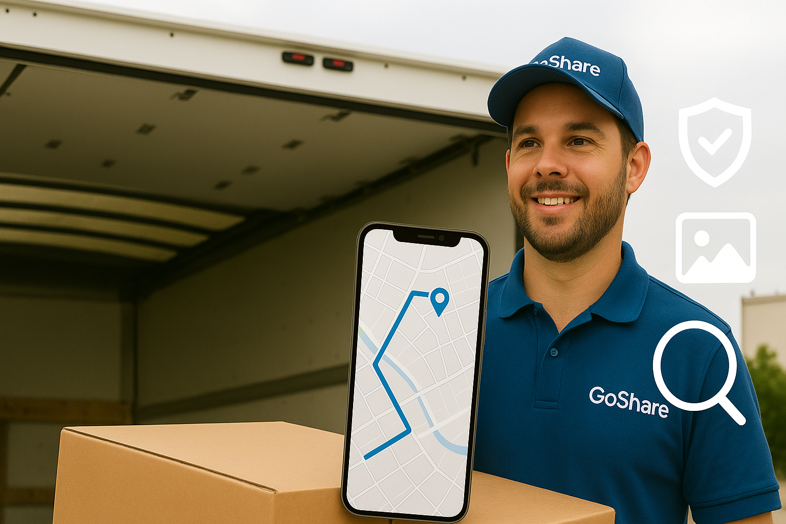 Every GoShare delivery includes a photographic proof of delivery and time-stamped event log. Receiver signature is also available when needed. Drivers can capture photos at pickup and must take a photo of the delivered cargo to confirm freight condition and successful completion.